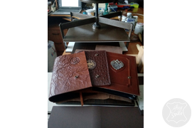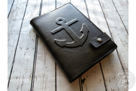 кожаный ежедневник с тиснением и шильдой с серебряным рисунком